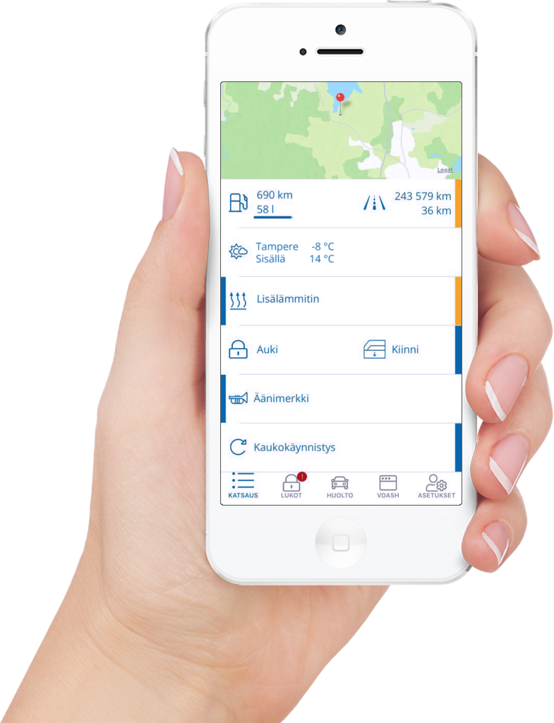 Voit ohjata auton toimintoja ja lukea tärkeitä tietoja autostasi. Samaan puhelimeen voi yhdistää monta autoa, joten halutessasi saat yrityksen kaikki Volvot hallintaan yhdellä puhelimella.